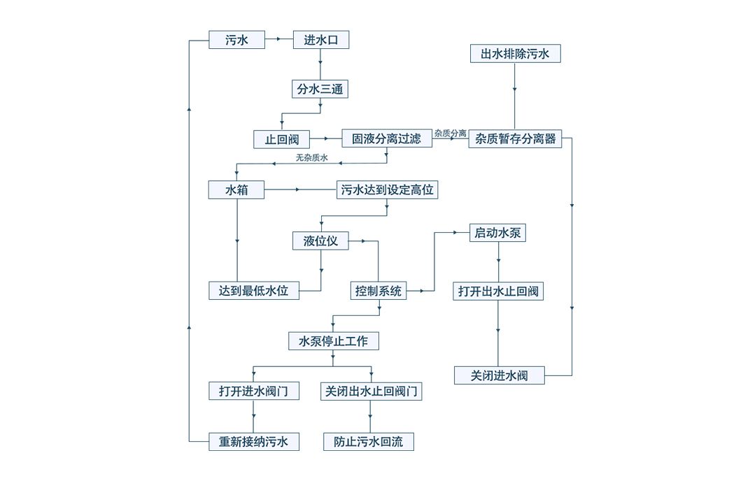 采用雜物污水分離器結(jié)構(gòu),使水泵與可纏繞型雜物不接觸,避免雜物纏繞堵塞水泵葉輪好而燒壞水泵電機;具有反沖洗功能,使得設(shè)備內(nèi)不會產(chǎn)生沉淀,實現(xiàn)了無沉淀,免清掏,大大節(jié)約了設(shè)備運行和管理維護(hù)的成本。